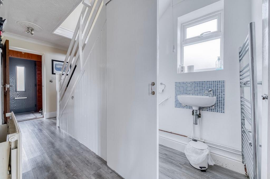 Upstairs, the property boasts three well-sized bedrooms, each with ample storage and natural light. The master and second bedrooms are particularly spacious, while the third bedroom is perfect for a child, guest, or home office. A contemporary family bathroom, featuring a walk-in shower, modern suite, and heated towel rail, completes the first-floor accommodation.