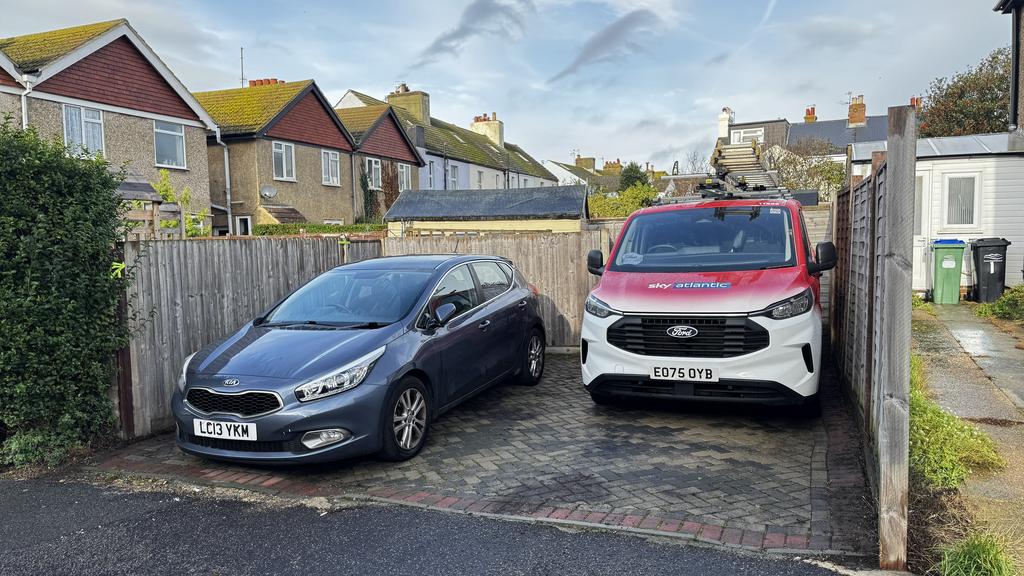 Outside, front and rear gardens. The property comes with its own parking, providing valuable off-street parking for two cars.
