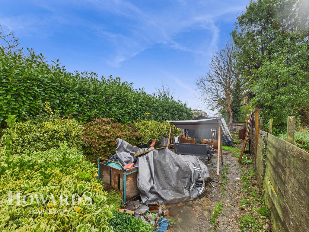Small forecourt, fully paved with shingled area bordered by low brick wall leading to porch. To the rear, a fantastic sized, predominantly laid to lawn garden space with hardstanding for a shed and various areas.