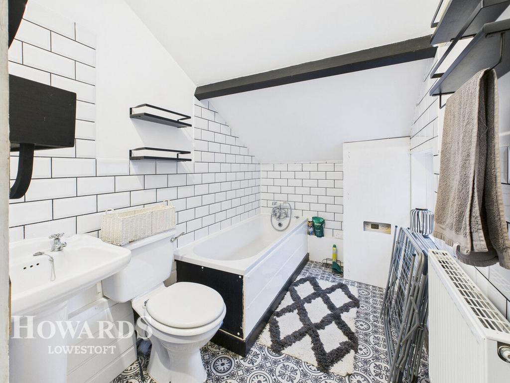 Full 3 piece suite comprising of low level w/c, pedestal sink with hot and cold taps and panelled bathtub with mixer tap and handheld showerhead, sealed unit double glazed windows, radiator, vinyl flooring.
