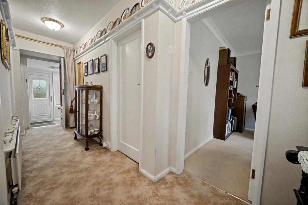 Porch: PVC door with double glazed opaque leaded windows and matching side windows with tiled flooring. Entrance Hall: Internal hardwood door with leaded opaque glazed window, radiator and plate shelf.