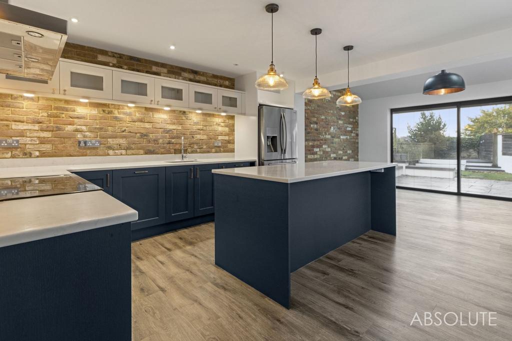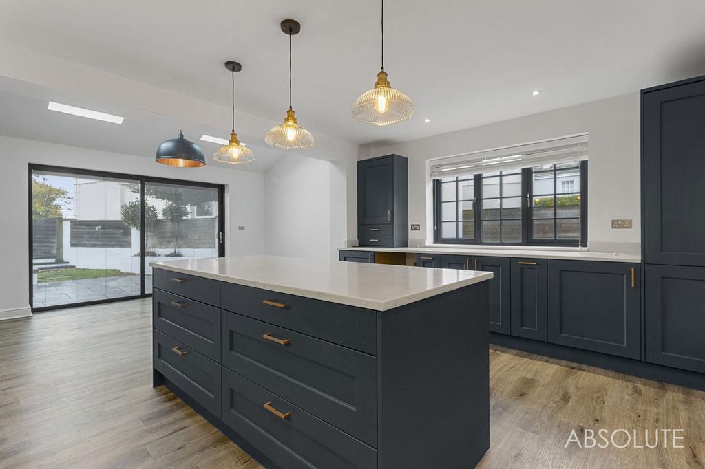 - Stunning vaulted kitchen/dining extension with Velux Skylight windows and statement lighting