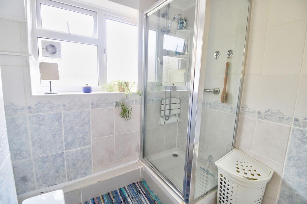 Shower Room - Glazed shower cubicle with wall mounted shower unit, new thermostat and shower attachments. New WC. Wash hand basin with vanity cupboard below. Wall mounted new gas boiler (Feb 2025 with 9 year warranty). Frosted uPVC double glazed window. Tiled flooring, inset spot lights, window fan, heated towel rail.