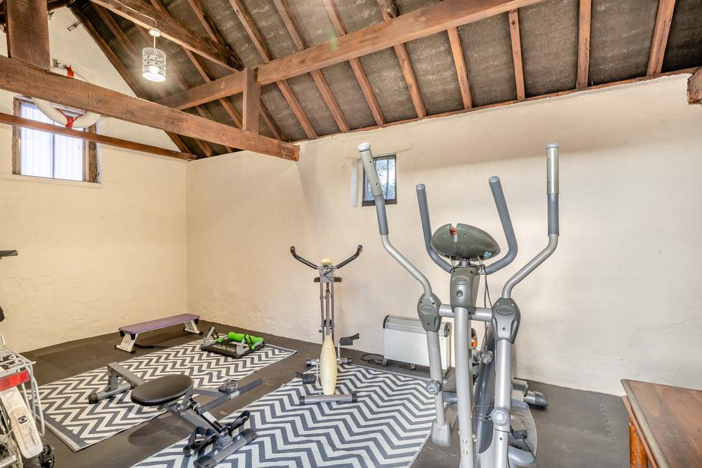 - Traditional outbuildings including workshop, log store, gym/bike store, and utility