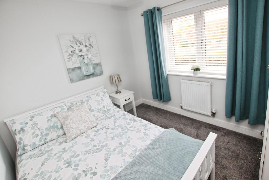 Bedroom Two – A large double bedroom to the rear, with carpet, radiator, sockets, and a pleasant garden outlook.
