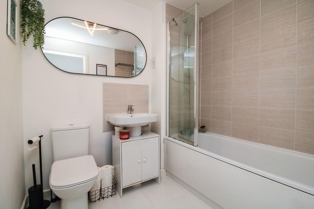 In brief the property comprises; bright entrance hall with intercom, three piece bathroom with shower over and glass screen, double bedroom with Juliette balcony allowing for natural light and built-in wardrobes. The spacious open plan Kitchen/dining/living space is perfect for cosy nights in and for entertaining, with a Juliette balcony and window to the side allowing this property to be flooded with natural light. A utility cupboard housing the boiler and for additional storage can also be found, the kitchen is well stocked with plenty of workspace, contemporary cabinetry and integrated appliances including, washing machine, dishwasher and fridge / freezer. The property also benefits from an allocated parking bay with additional visitor parking close by.