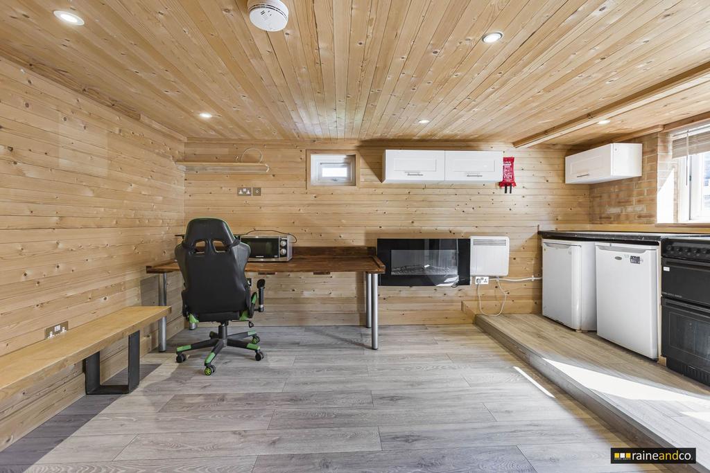 Externally, the rear garden provides a perfect entertainment space, featuring a tiled patio, brick built BBQ, storage shed, and a self contained annex with its own lounge, kitchen, and shower room ideal as guest accommodation, home office, or independent living space. The converted loft adds further versatility, offering potential as a study, playroom, or hobby room.