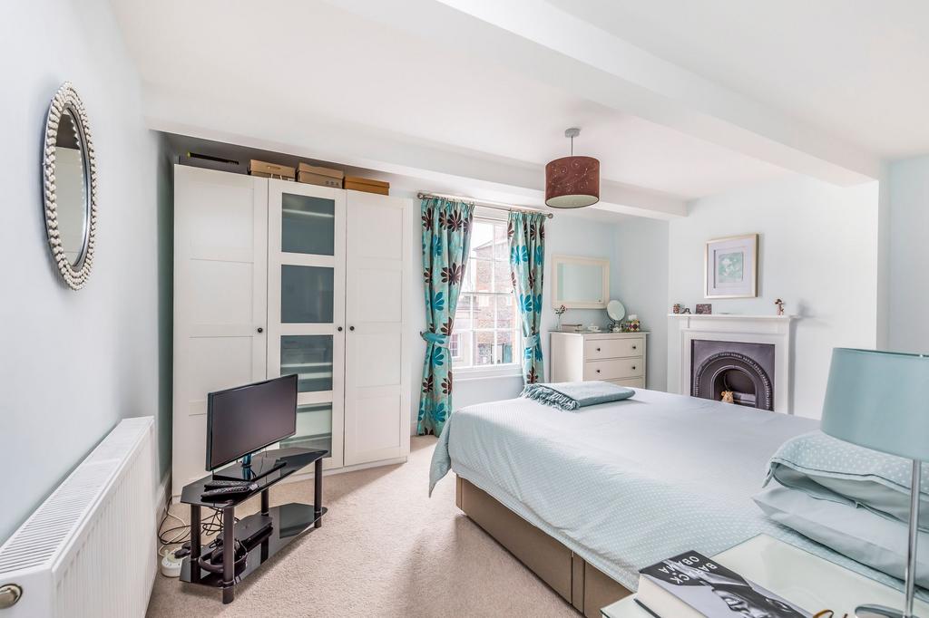 On the first floor, the principal bedroom enjoys a large sash window, fireplace, and a stylish en-suite shower room, while a further double bedroom/study completes this level. The second floor comprises two additional bedrooms and a family bathroom.