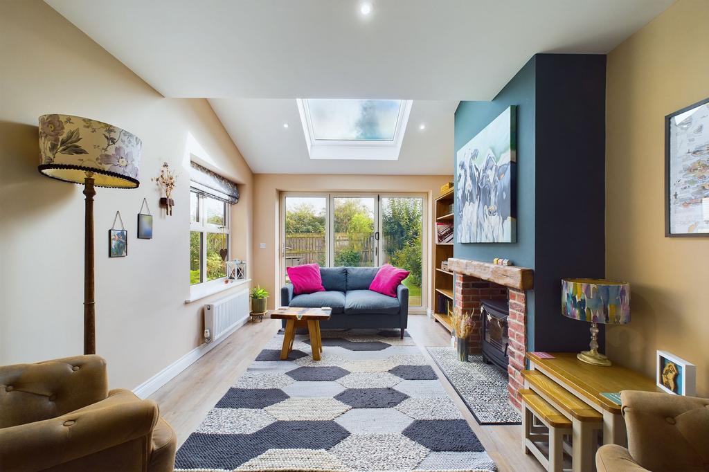 - Feature log burner creating a warm and inviting focal point in the main living space