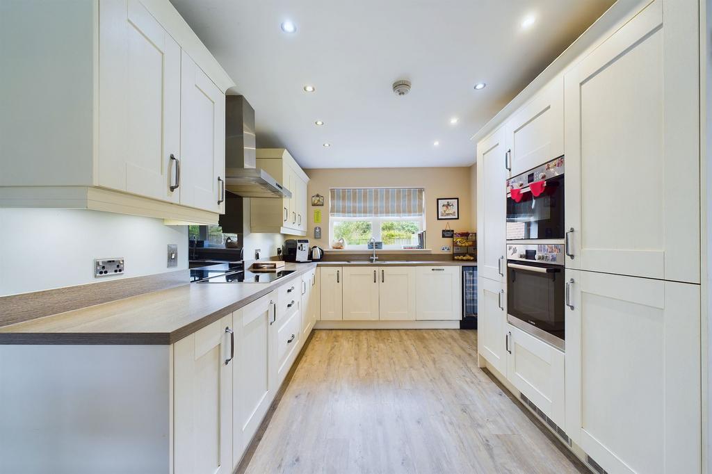 Upstairs, four well-proportioned double bedrooms offer plenty of flexibility for family members, guests, or home working. The principal bedroom enjoys an en-suite shower room, complemented by a modern family bathroom serving the remaining rooms.