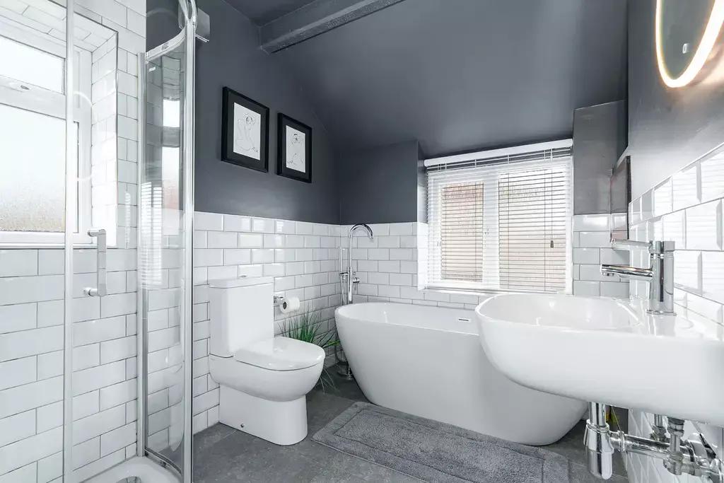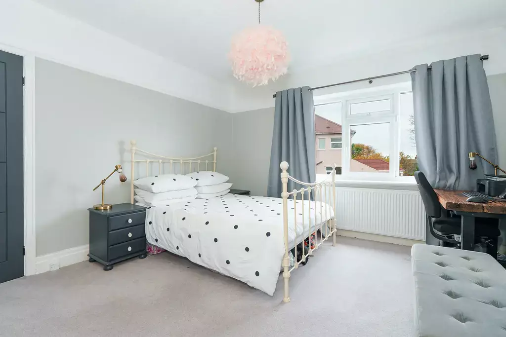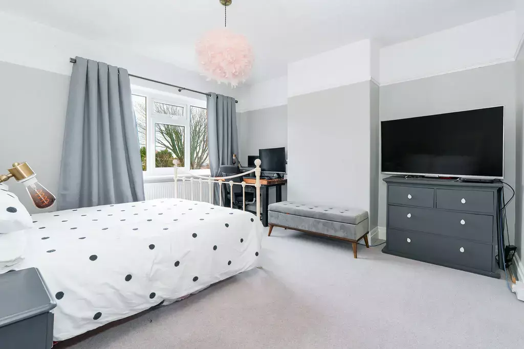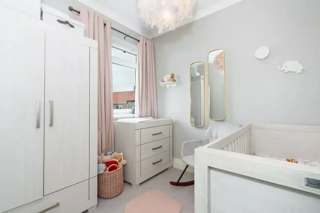 The first floor offers three well-proportioned bedrooms, with the principal bedroom benefitting from a range of fitted wardrobes and storage solutions. The stylish family bathroom is beautifully appointed, featuring both a separate bath and shower.