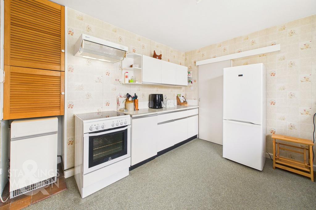 Stepping inside, the hall entrance is finished with fitted carpet underfoot and a useful built-in double storage cupboard with loft access hatch above. The family bathroom sits at the front of the property with a white three piece suite including a mixer shower tap with over the bath and tiled splash-backs. The three bedrooms run down the right hand side of the property, with each bedroom being finished with fitted carpet and uPVC double glazing with the larger of the bedrooms facing to the rear, and including a built-in double wardrobe. The kitchen sits at the front and centre of the property with a array of built-in storage and space for a freestanding electric cooker, with a front facing window, fitted carpet underfoot, built-in pantry and space for general white goods including a fridge freezer and washing machine. A door leads off to an inner hall and lobby area, whilst the sitting room sits adjacent with rear facing views and a feature fireplace creating a focal point to the room. With fitted carpet flowing underfoot, a door takes you to an adjacent dining room or family space - complete with fitted carpet, door to front lobby and sliding patio doors to a rear facing conservatory. With uPVC windows to side and rear, French doors lead out to the garden, whilst fitted carpet can be found underfoot. The front lobby area offers a door to the front driveway and integral access to the garage, with space for storage or a potential utility area, with a further door taking you to the shower room complete with a white three piece suite. The shower includes a thermostatically controlled shower within the cubicle, tiled walls and heated towel rail.