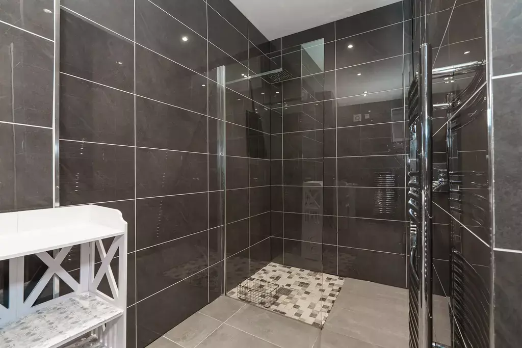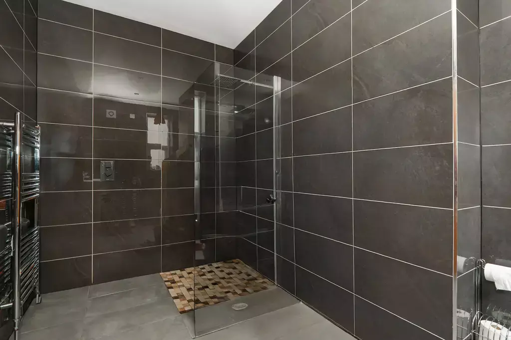 There are two double bedrooms, including a principal bedroom with a luxurious ensuite wet room, along with an additional stylish wet room.