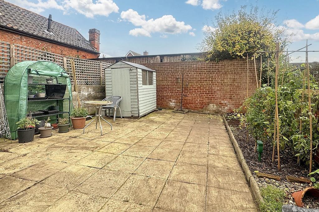 Outside, to the front of the property is a wide footpath where the property owners have the ancient right to park one car, as is common to the homes along Angel Street. To the rear lies a south-facing courtyard garden, bounded mainly by red brick walls, with mature shrubs and a garden shed.
