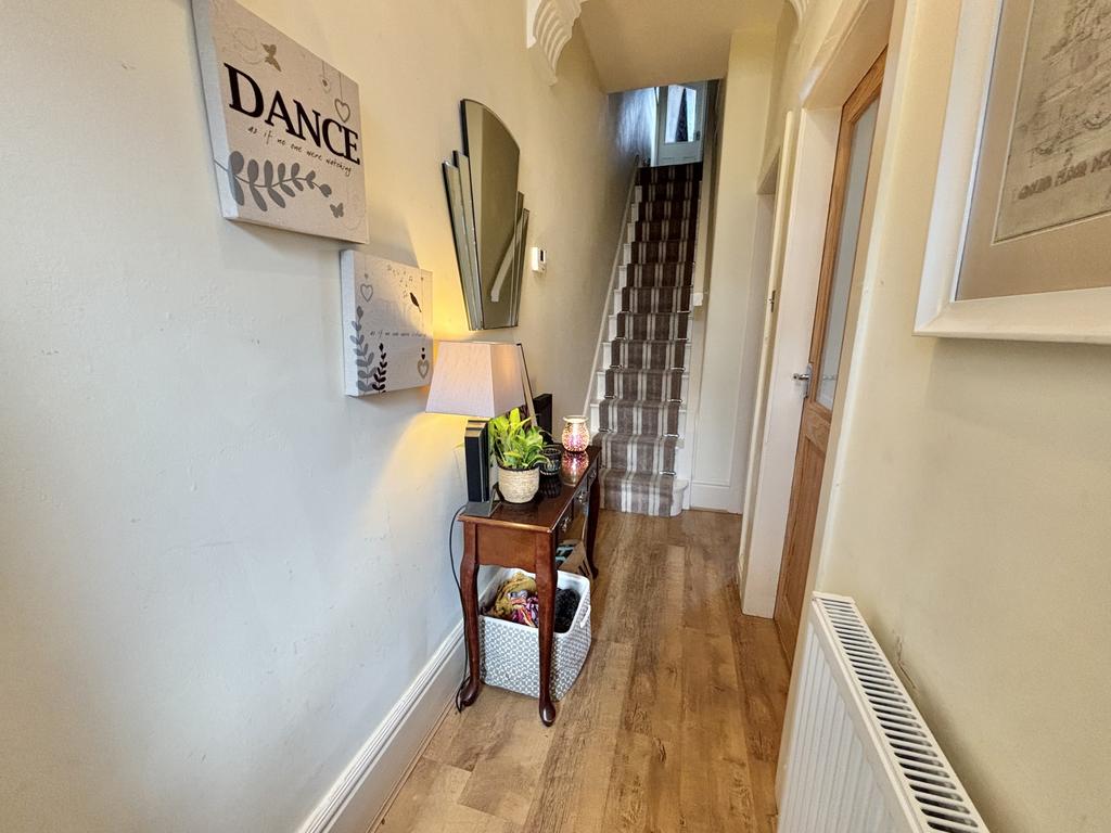 UPVC windows, radiator, fire in surround, access to storage under the stairs.