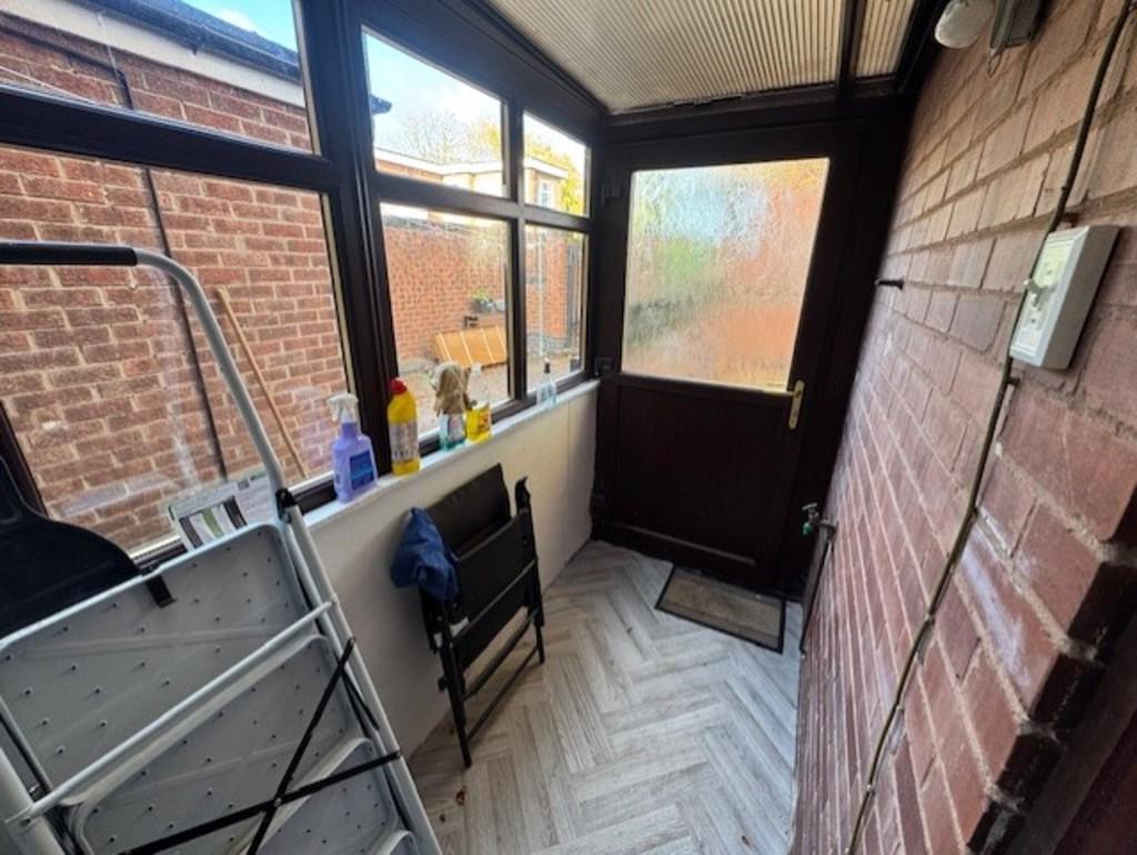 PORCH 9' 0" x 3' 11" (2.74m x 1.19m) Having parquet style vinyl flooring and Upvc door out to the rear yard. Cold water tap.