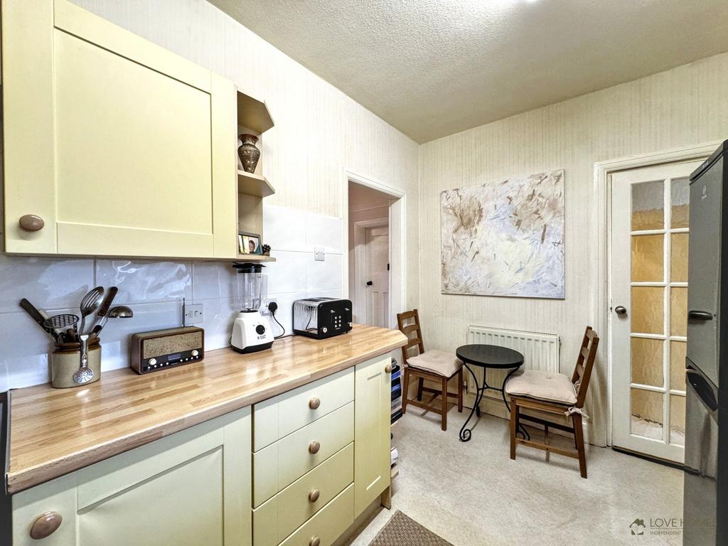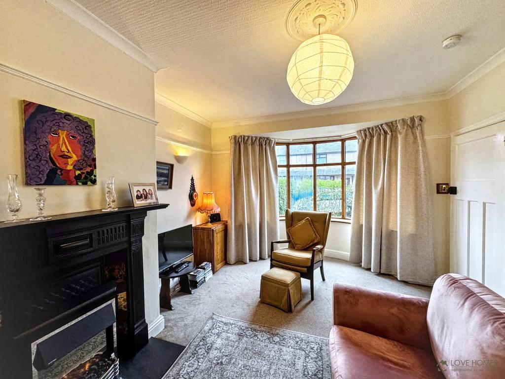 The property itself is set within a row of similar homes, with an attractive garden front edged by mature hedging for privacy. Inside, the accommodation is warm and inviting. The entrance hall leads to a living room, filled with natural light from the large walk-in bay window. A feature open fireplace, believed to be original, provides a focal point to the room and reflects the property's 1930s heritage. The current owner uses an electric fire for convenience, but it is thought that the fireplace remains in working order.