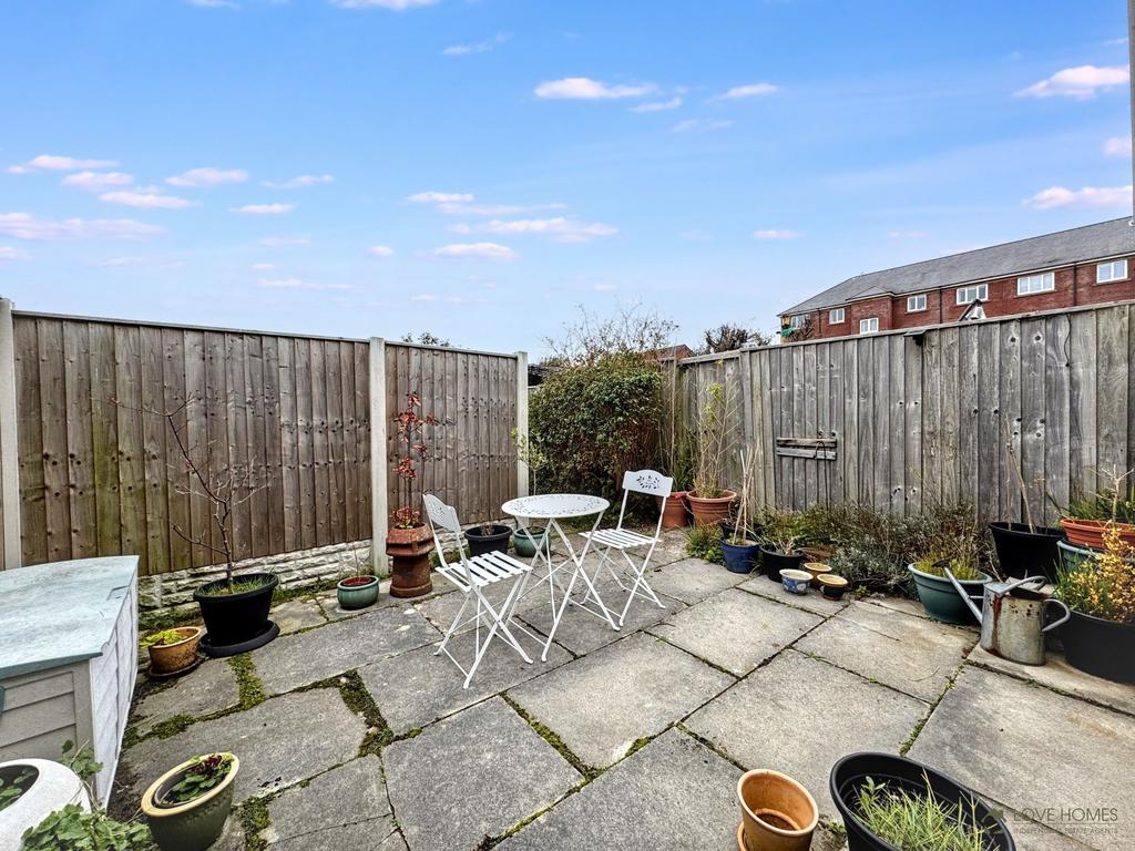 The rear garden is a real asset to the property and offers plenty of space to enjoy the outdoors. French doors from the conservatory open onto a patio area that is perfect for entertaining, relaxing or al fresco dining. Beyond the patio lies a generous lawned garden bordered by mature shrubs and hedging. The garden is currently divided into two sections by fencing, which could easily be removed to create one large open space if preferred. The garden is well maintained as it stands but also offers excellent potential for further landscaping or personalisation.