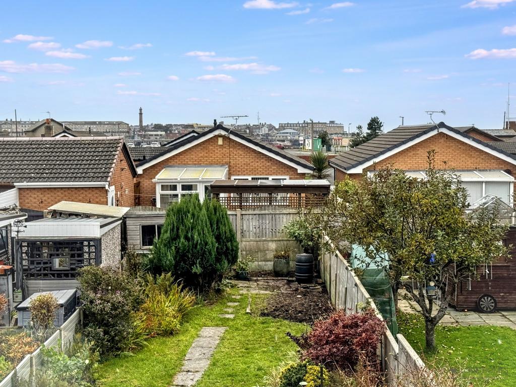 Upstairs there are two bedrooms. The main bedroom, to the front of the house, is spacious and light, with alcoves that would be ideal for fitted wardrobes. The second double bedroom overlooks the rear garden and enjoys a view towards the lighthouse of Fleetwood, with a glimpse of the sea beyond. The bathroom completes the internal accommodation and features a three-piece suite including bath with shower over, wash basin and WC, along with a frosted window providing both light and privacy.