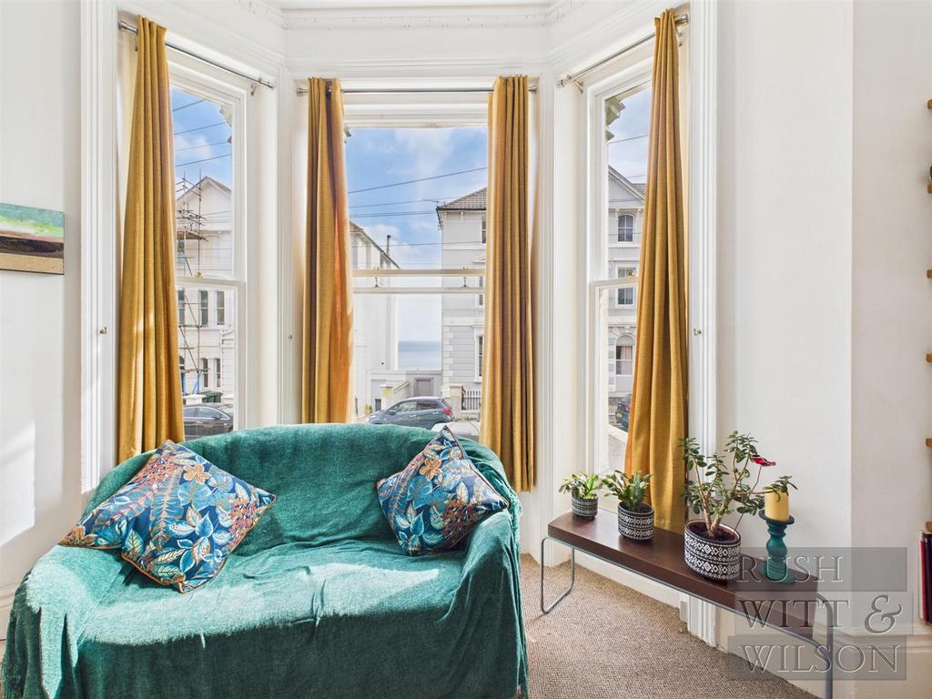 Nestled on West Hill Road in the charming area of St. Leonards-On-Sea, this delightful one-bedroom apartment offers a unique blend of comfort and coastal living. This well-presented conversion occupies an enviable position elevated above the seafront, providing stunning sea views that can be enjoyed from the bright bay-fronted living room. The spacious living area not only boasts ample natural light but also allows for a dining table, creating an inviting space for entertaining. The fitted kitchen is conveniently separate, featuring plenty of storage and worktop space, making it ideal for culinary enthusiasts. The double bedroom, located at the rear of the property, ensures a peaceful retreat, while the bathroom is equipped with both a bath and a shower over, catering to all your bathing needs. One of the standout features of this property is the impressive private garden, which offers multiple seating areas perfect for al-fresco dining. The generous lawn leads to a raised decking area, providing an idyllic outdoor space to relax and enjoy the fresh sea air. Additionally, the property includes off-road parking for one vehicle, a valuable asset in this sought-after location. Conveniently situated just a short stroll from the vibrant hub of St. Leonards, residents will find themselves close to local shops, St. Leonards Gardens, and West St. Leonards railway station, which offers direct connections to London. With a leasehold tenure of circa. 145 years remaining, this apartment presents an excellent opportunity for those seeking a seaside retreat or a comfortable home.