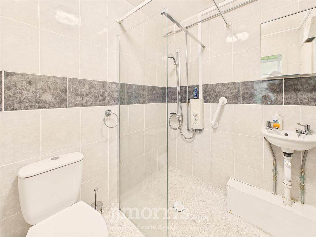Shower Room/Wet Room - Low flush WC, wash basin, electric shower, dimplex extraction fan, tiled walls, vinyl flooring, window