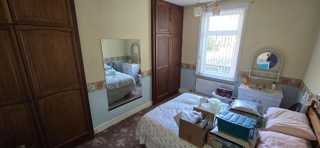 •Upstairs: Two well-proportioned bedrooms (one with hand basin) and a box room. The family bathroom is accessed via a half landing, accompanied by a separate toilet — both in need of replacement