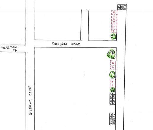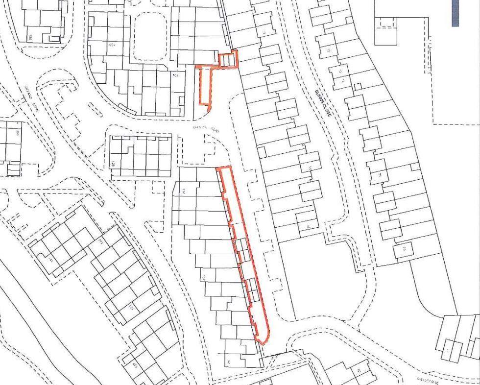 The property comprises 11 garages and 11 parking spaces. Three of the garages are occupied and 8 of the garages are vacant. The garages and the parking spaces are located to the rear of a residential estate and can be reached via Dryden Road.