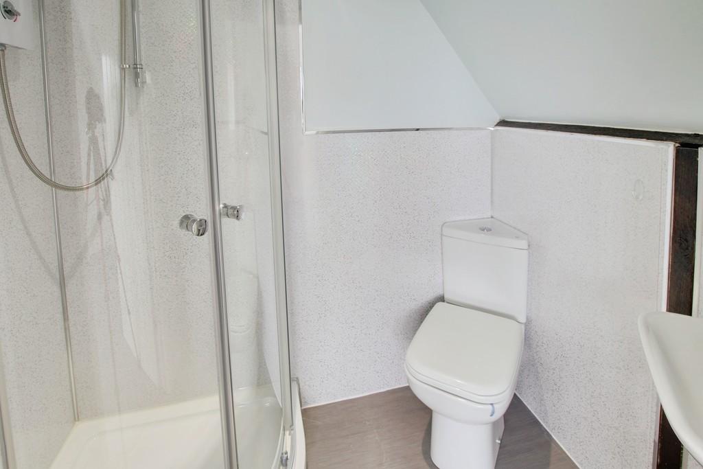 Fitted with a three piece suite comprising corner shower, wash hand basin and WC, heated towel rail.