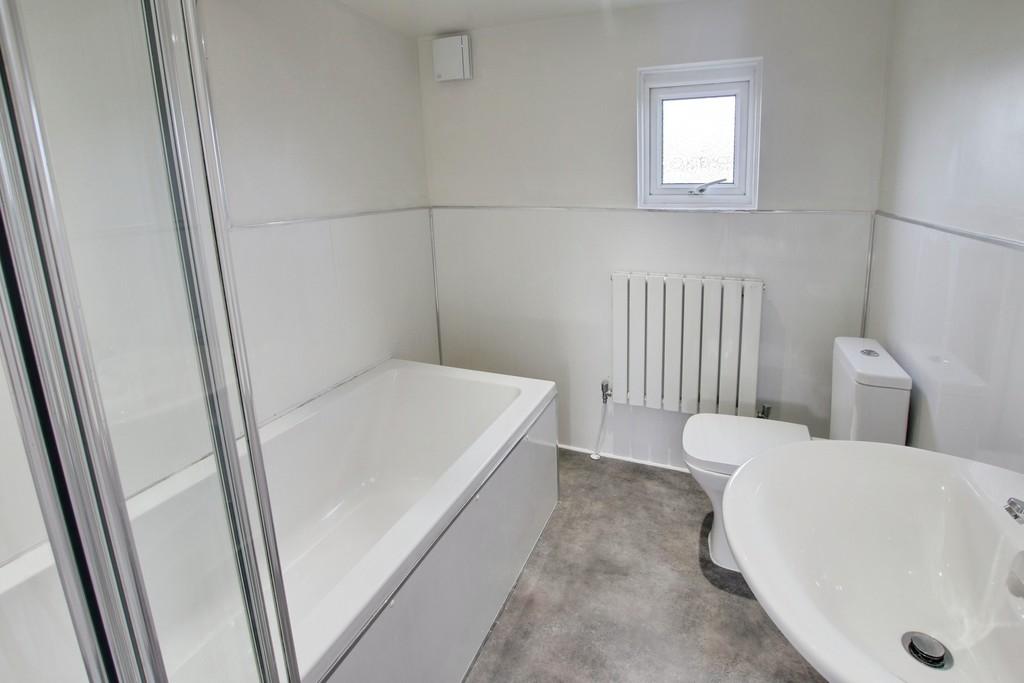 Fitted with a three piece suite comprising bath with shower over, wash hand basin and WC, window to rear, heated towel rail.