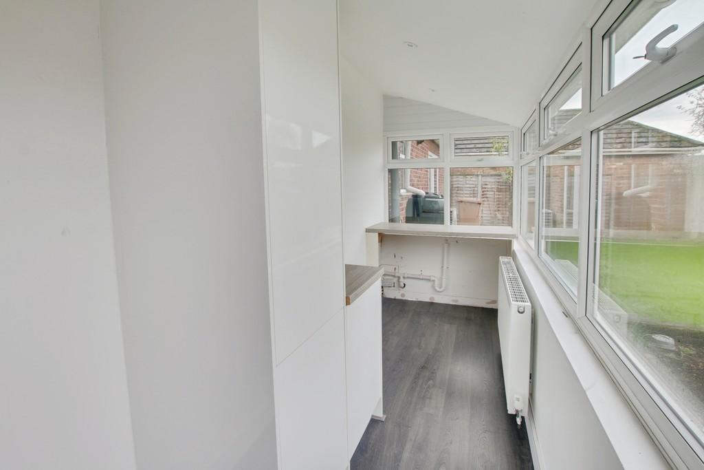 Plumbing for washing machine and space for tumble drier, double doors opening to the rear garden.