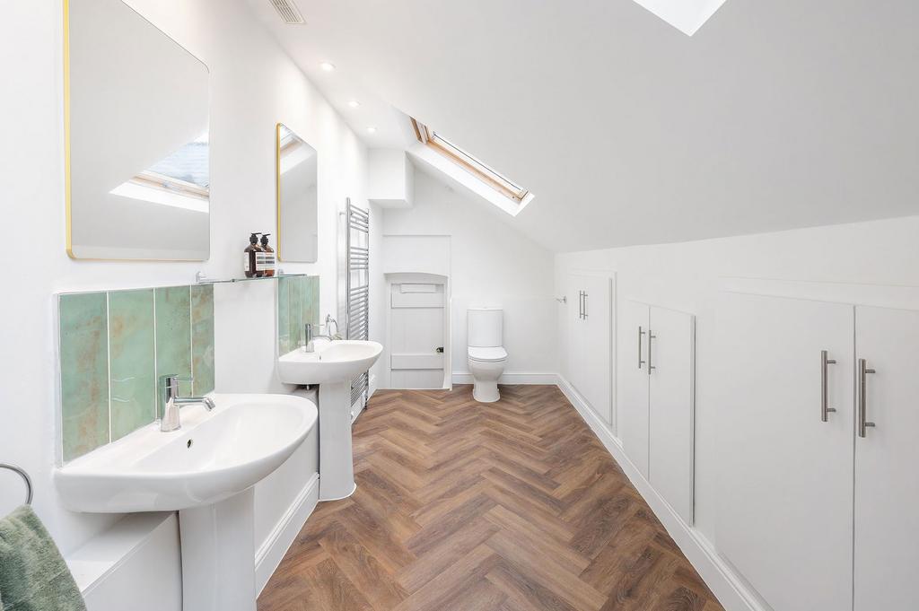 The bedroom is generous in size, with ample space for storage, and the bathroom is conveniently located nearby, featuring stylish his and her sinks for added comfort and practicality. There is also a void area providing additional flexible space — ideal for a home office, dressing area, or extra storage.