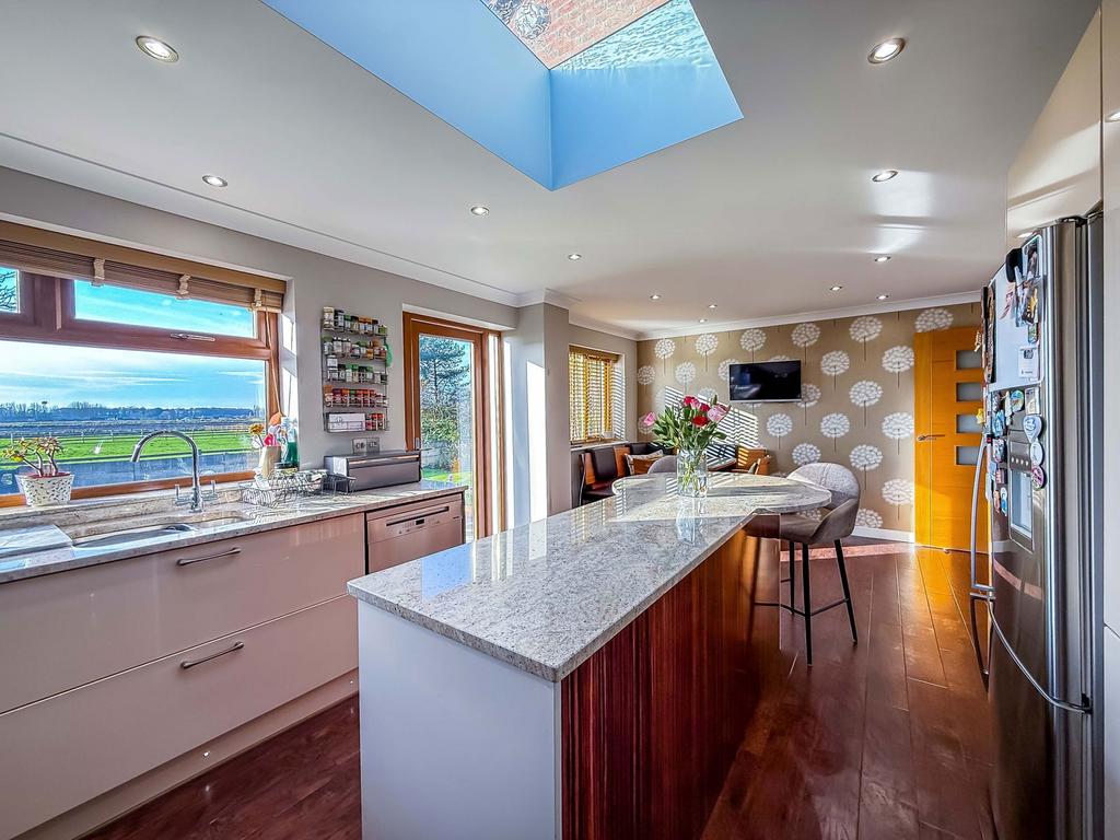 This charming, extended and modernised detached family home stands in an established, generous plot, boasting unrivalled views to the front, side, and rear over open farmland. The location is particularly convenient, offering easy access to nearby Crossens and Churchtown Village, excellent transport links, local of facilities and amenities, and a number of sought-after primary schools. The property has been thoughtfully planned throughout, providing versatile accommodation. The ground floor features a WC off the entrance hall, a main lounge overlooking the gardens and rear views, a separate sitting room leading to a study, and an impressive breakfast kitchen with an island unit at the heart of the home, perfect for family gatherings and offering direct access to the rear gardens and those fabulous views. Upstairs, there are four bedrooms, including a master with an en-suite shower room, and a separate modern family bathroom. The gardens feature a staircase leading to a raised terrace with glazed balustrade, making the most of the scenery. Off-road parking is available at the front, along with a double garage for convenience.