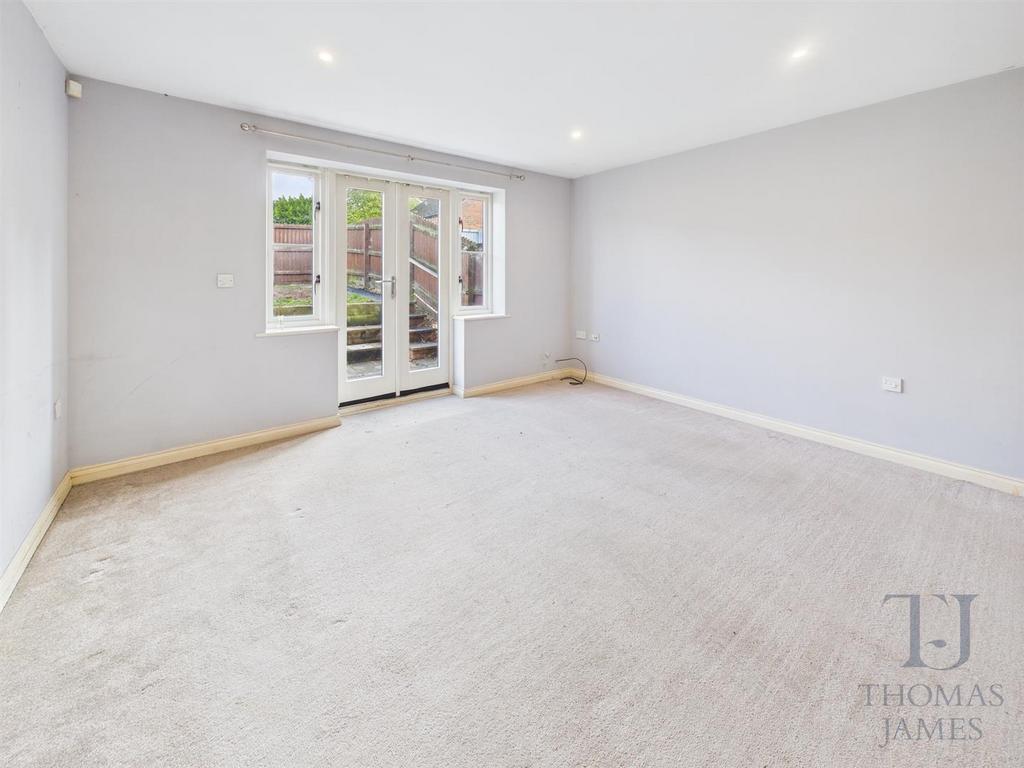 Spanning the width of the property at the rear, the lounge has French doors opening to the rear garden, with windows to both sides.