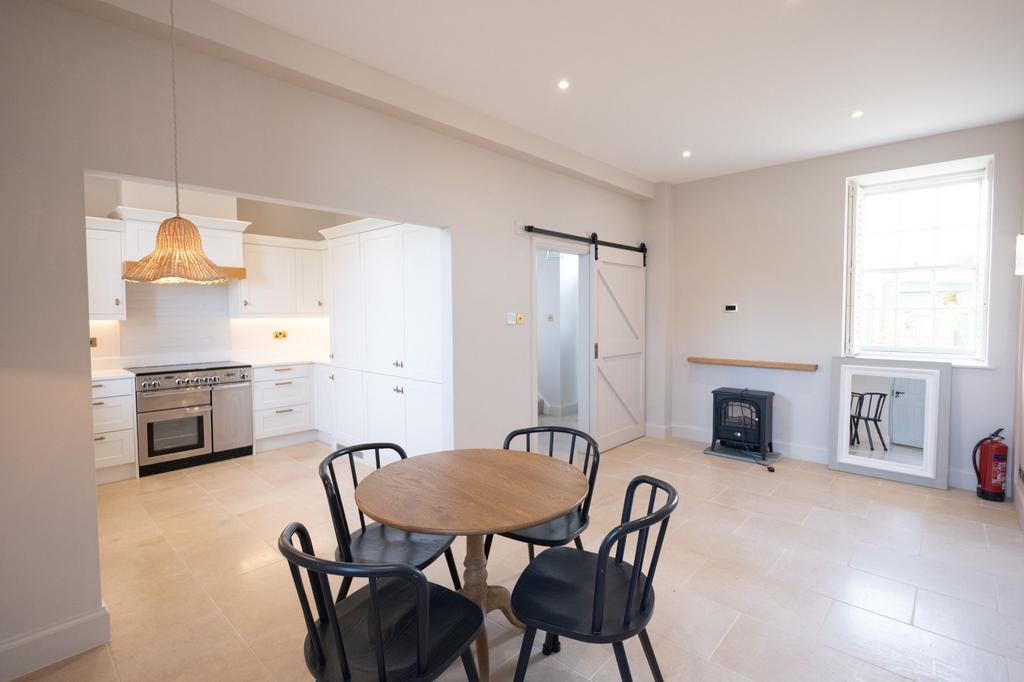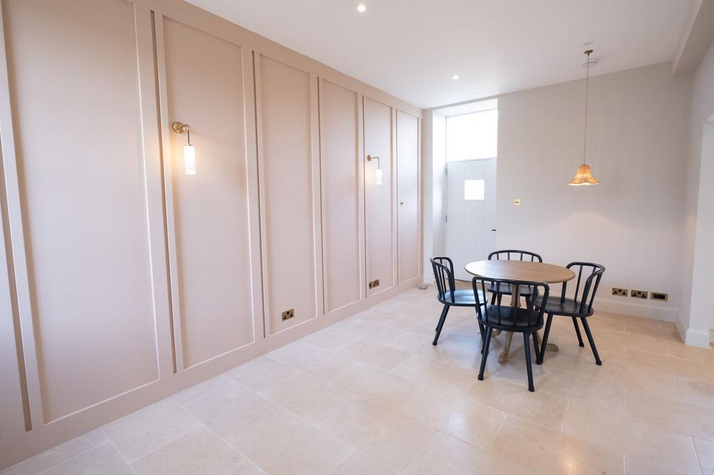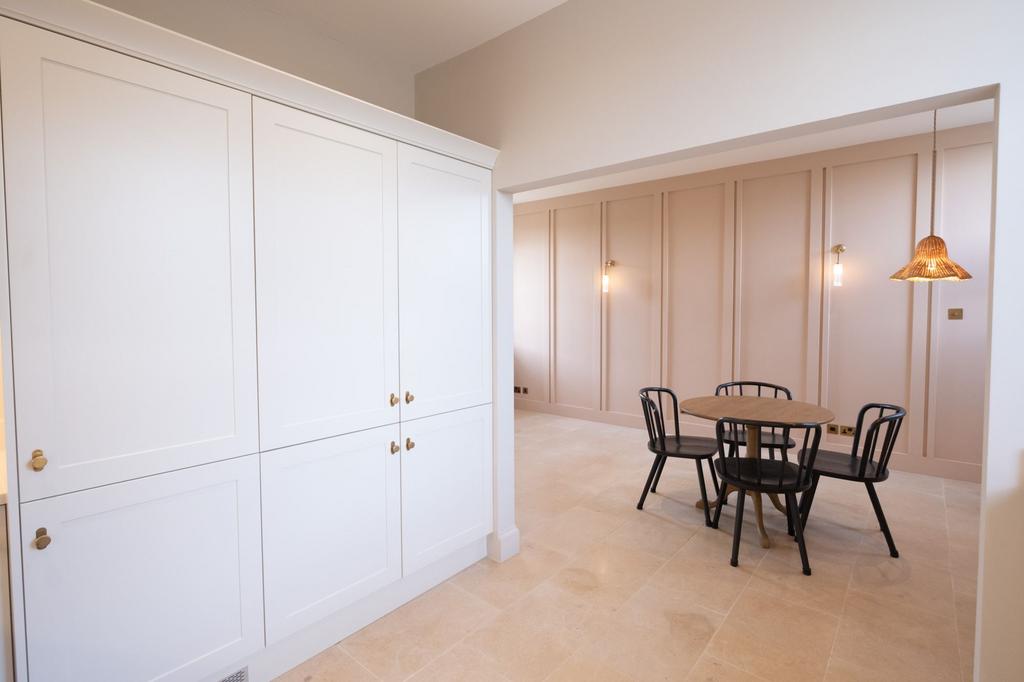 Spacious open plan lounge/diner and fully fitted kitchen with integrated appliances. Downstairs WC.