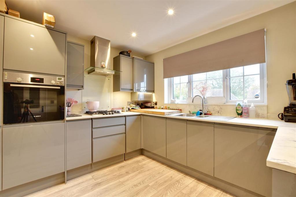 Kitchen/Breakfast Room - 4.75m x 3.28m (15'7 x 10'9 ) - Window to front, extensively fitted with a range of modern cupboard and drawer base units, matching wall mounted cabinets, integrated dishwasher, integral washing machine, upright unit housing fridge and freezer, further upright unit with eye level oven, complimenting worktop with inset sink and inset four burner gas hob, wall mounted gas fired boiler, door to the side.