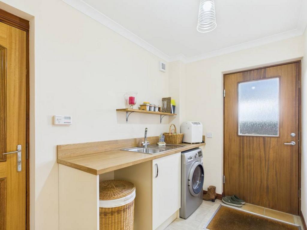 On the ground floor, you'll also find a versatile bedroom, currently used as a home office, with mirrored wardrobes and a front-facing window. The utility room offers practical cabinetry, space for laundry appliances, and direct access to both the garage and rear garden.