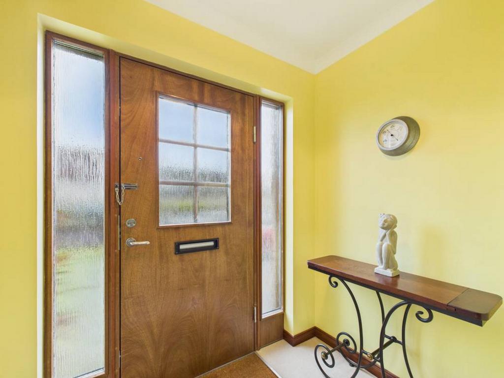 From the moment you arrive, the home exudes warmth and welcome. A bright vestibule with soft carpet and ambient lighting leads through a partially glazed door into the spacious L-shaped entrance hallway. Here, you'll find a balustrade staircase, a large walk-in under-stairs cupboard, and a sense of openness that sets the tone for the rest of the property.