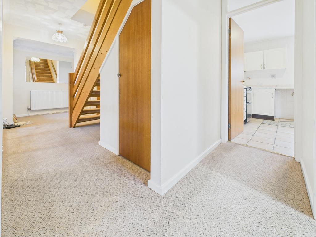 Step into the spacious hallway, where contemporary décor immediately sets a bright, welcoming tone with carpeted floors, open staircase, storage and doors leading to ground floor rooms. The expansive kitchen is the heart of the home, thoughtfully extended to maximise space for gatherings or everyday family life. A double glazed porch is attached to the side of the kitchen providing additional space and access to the side of the property.