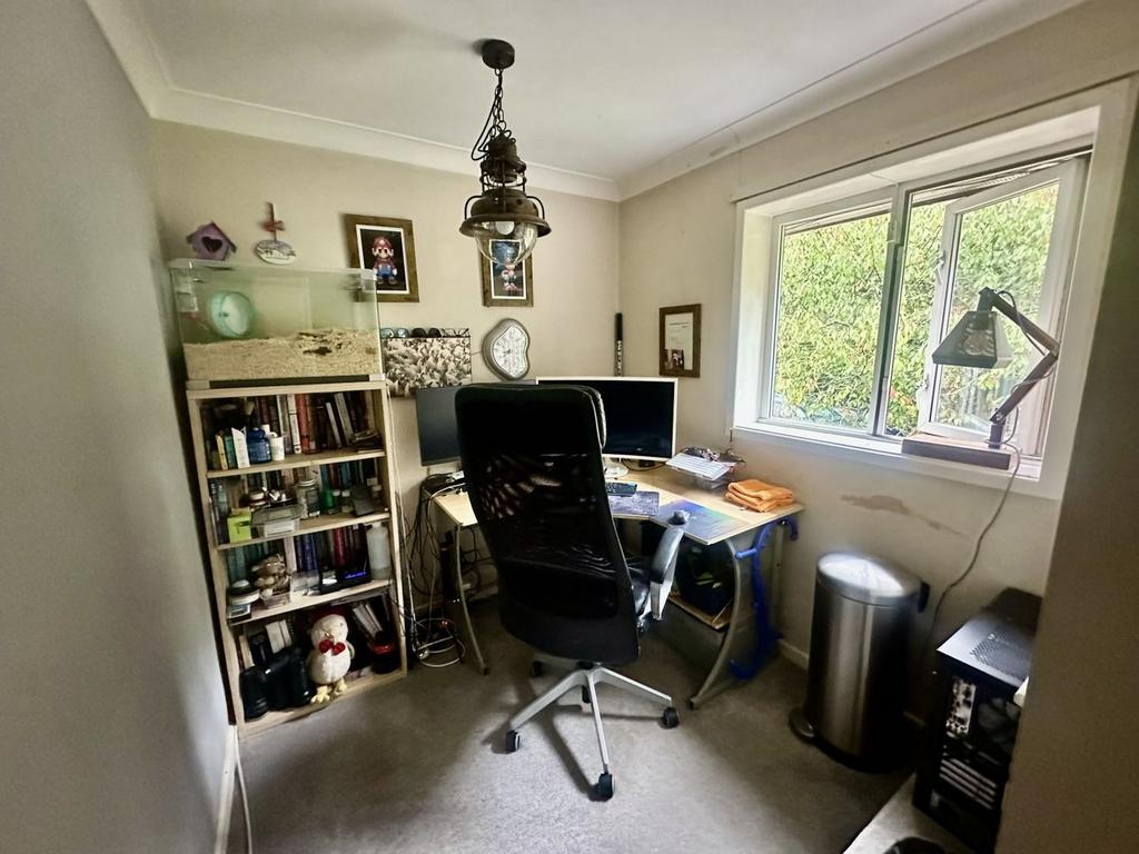 Tucked away in a peaceful spot with lovely woodland views, this great, semi-detached house is an ideal family home. On the ground floor, the spacious entrance hall with tiled flooring leads into a bright and airy living/dining room, a wonderful space for relaxing or hosting friends and family, with patio doors opening directly onto the garden. There’s also a home office, ideal for remote working and a kitchen with a range of wall and base units and an integrated oven and hob. Off the kitchen, a rear hall provides access to a useful utility area and WC. Upstairs, there are three bedrooms, all benefitting from built-in storage, along with a modern family bathroom. Outside, the property is approached via a shared private road leading to a communal parking area. The rear garden is a real highlight, backing onto woodland, it offers a private and tranquil retreat. Designed for both relaxation and entertaining, it features paved patio areas ideal for al fresco dining, a lawn, shrub borders, a pergola, garden store and even a home office/garden room, perfect for flexible working or hobbies.