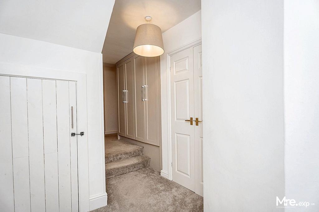 Upstairs, there are four bedrooms, including a principal bedroom with a balcony positioned to enjoy the evening sun, and newly fitted wardrobes providing ample storage. There are two modern bathrooms—one on each floor.