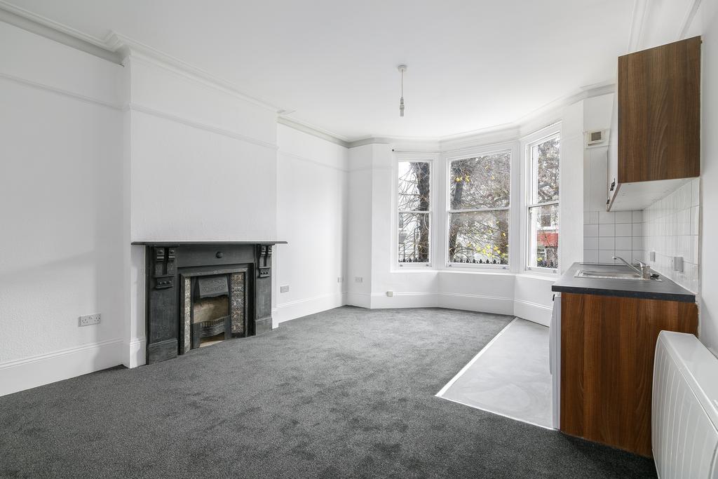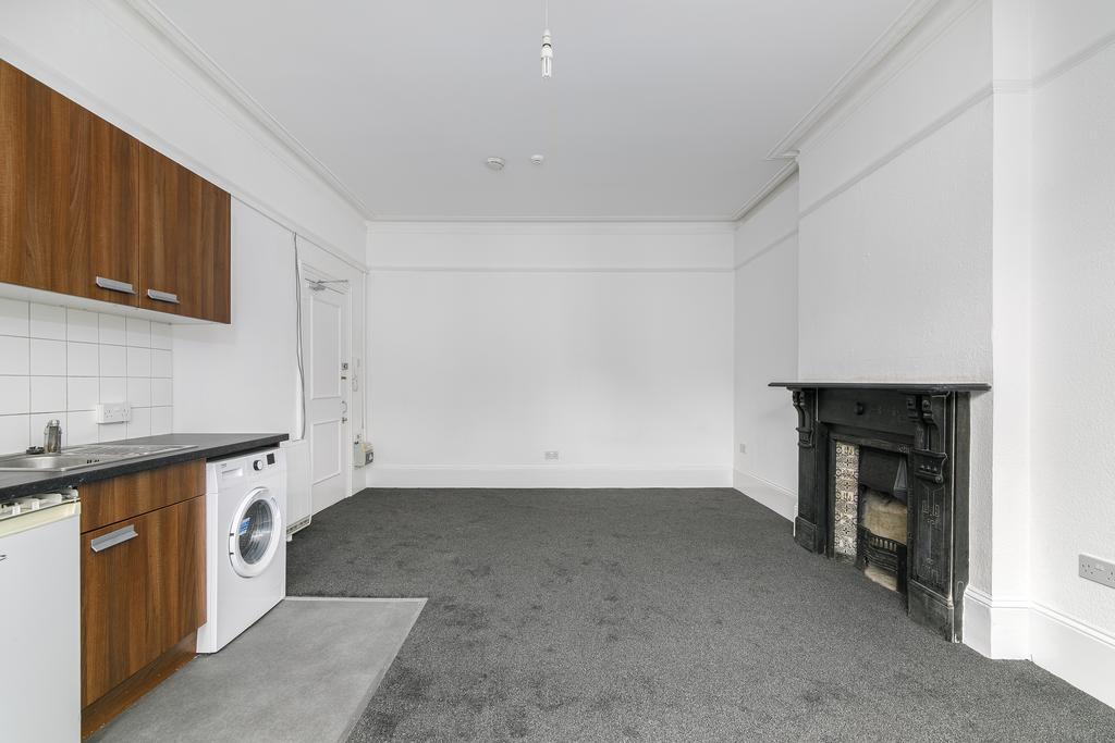The double room has been thoughtfully renovated to a high standard, featuring new flooring, a spacious bedroom with high ceilings and period features, and a sleek modern kitchen area. The room benefits from excellent storage space.