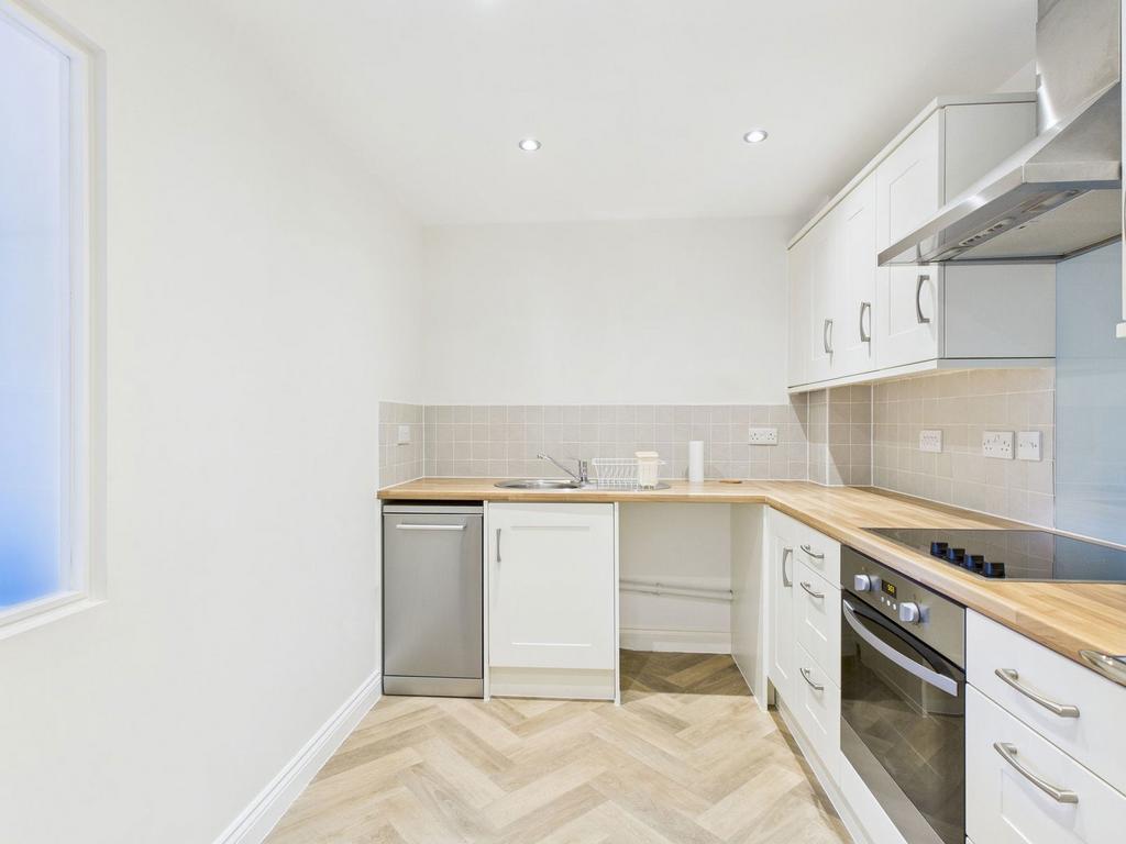 The property features a welcoming entrance hall, a bright open-plan living/dining space, a modern fitted kitchen with integrated appliances, a spacious bedroom with dressing area and fitted wardrobes, and a contemporary bathroom with shower over bath.