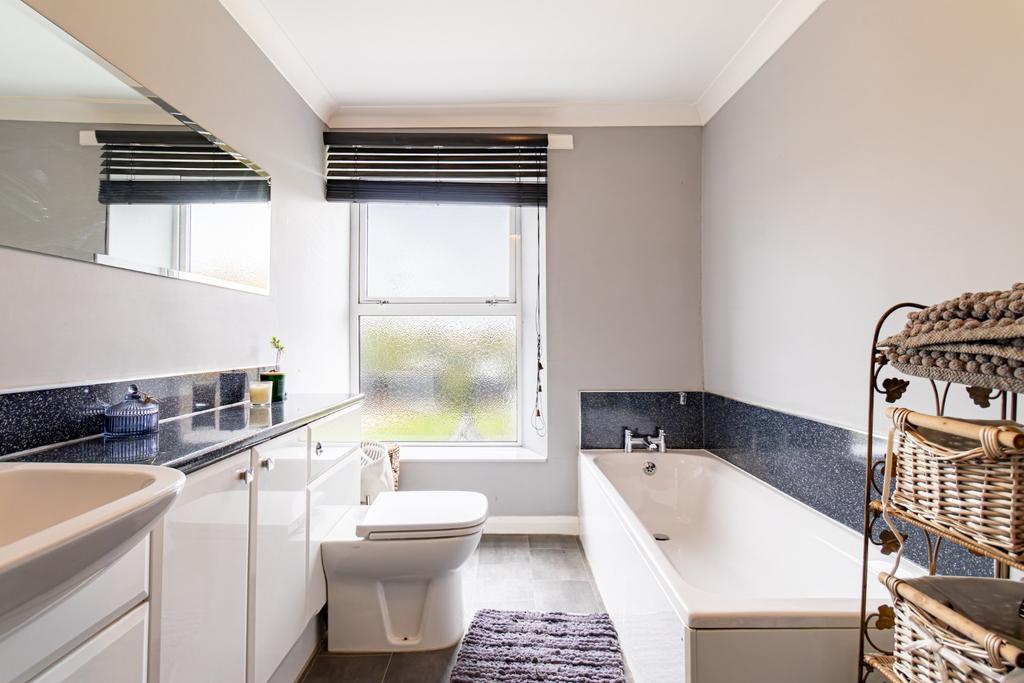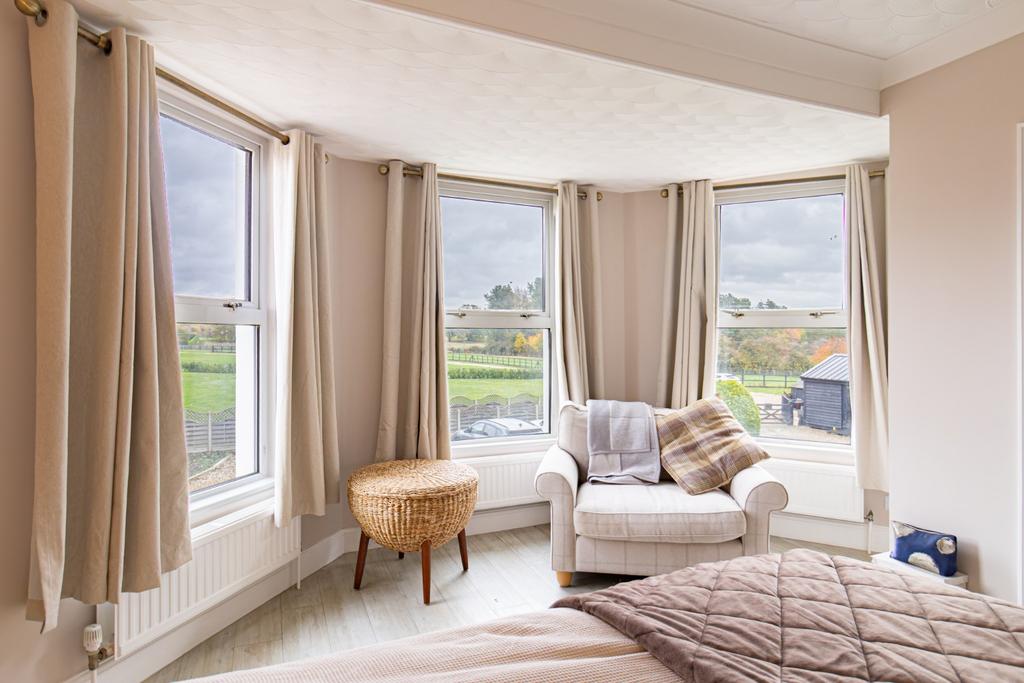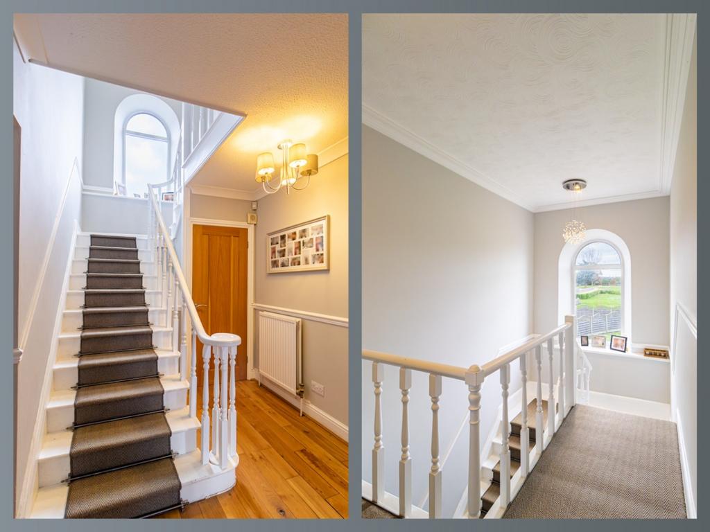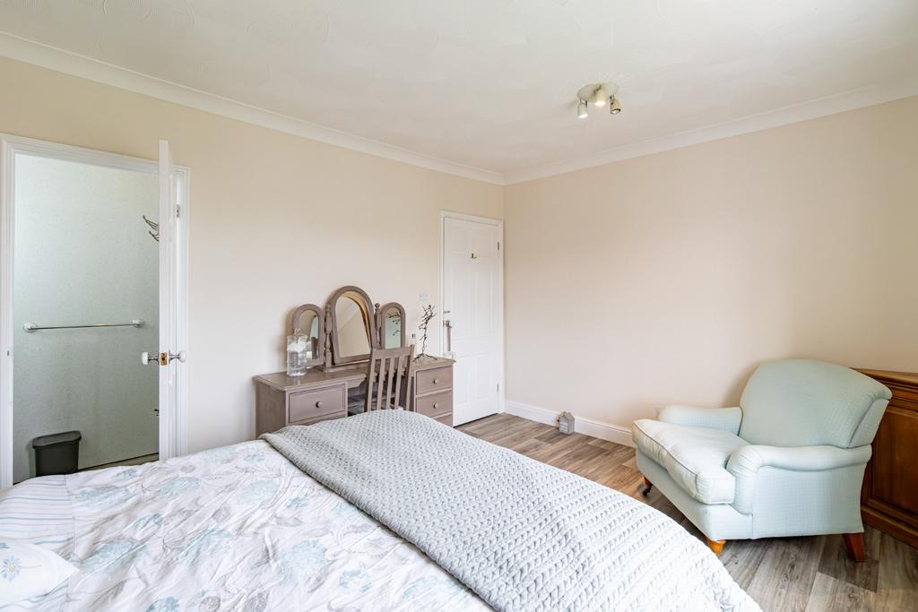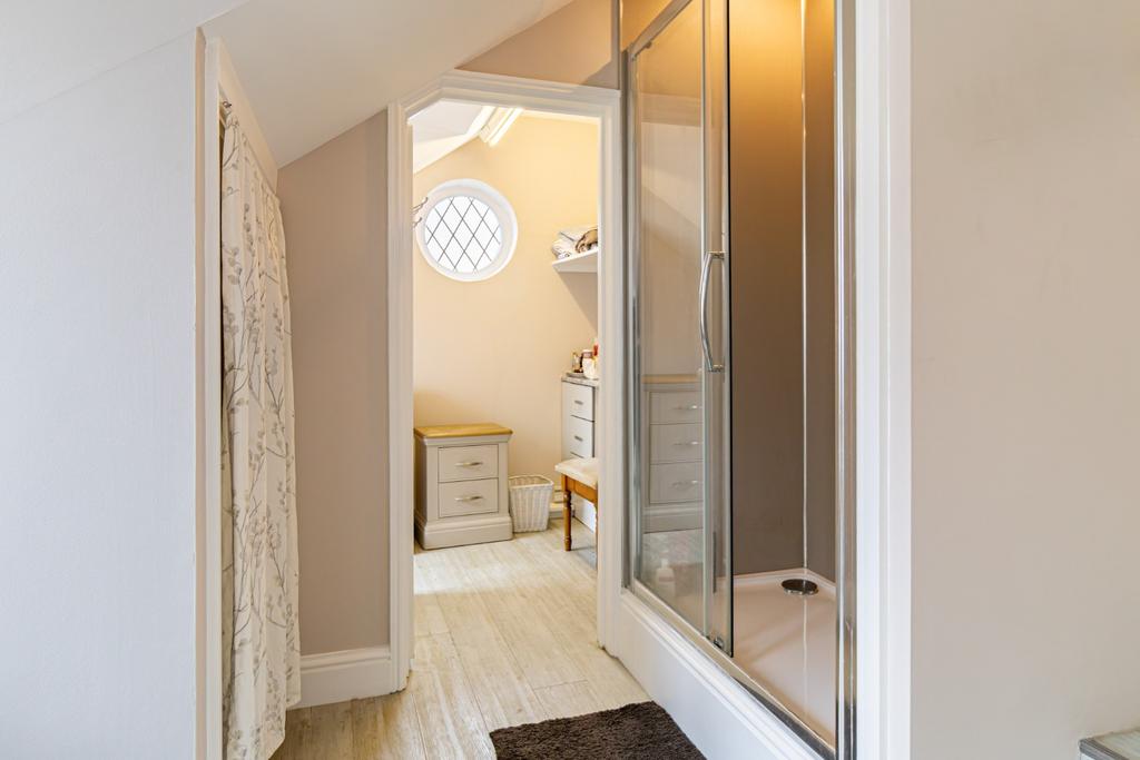 Upstairs, a central landing gives access to four generous double bedrooms and the family bathroom. The superb master bedroom enjoys a large bay window and boasts the added luxuries of a walk-in wardrobe, separate dressing area, and a private ensuite with both a bath and a separate shower. Bedroom 2 also benefits from its own ensuite shower room, providing additional comfort and convenience for family or guests. A well-appointed family bathroom with separate bath and shower serves the remaining bedrooms.