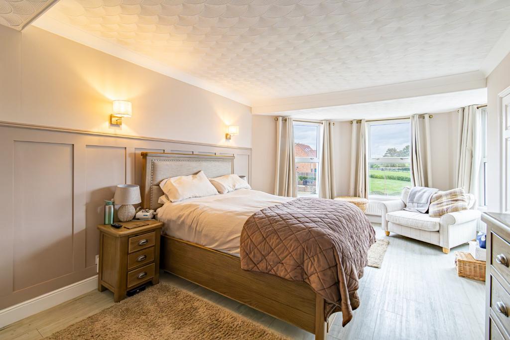 Upon entering Middle Farm House, you are welcomed into a spacious entrance hall that extends through to the centre of the home, where the elegant staircase forms the main focal point. The principle living spaces lead off this central hallway, creating an inviting and well-balanced layout. To one side, you’ll find the impressively sized kitchen/dining room, a superb space for entertaining and everyday family life. The kitchen is fitted with a range of shaker-style storage units, integrated dishwasher, and a practical breakfast bar ideal for casual dining. The adjoining dining area provides ample space for a large table and chairs, while a separate formal dining room offers the perfect setting for special occasions. Also accessed from the hallway is the spacious bay-fronted living room, featuring a striking fireplace that serves as the main focal point and adds warmth and character to the space. Adjacent to the living room is a charming snug, complete with its own feature fireplace, offering a cosy retreat or an ideal home office for remote working. Leading off the living and dining rooms is an additional versatile reception room, currently used for storage but equally well suited as a games room, hobby room, or home gym. Completing the ground floor accommodation is a convenient shower room and a utility area located within the garage.