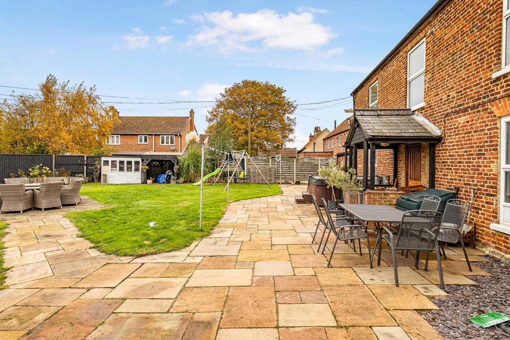 The Norfolk Agents are delighted to present Middle Farm House, a charming four-bedroom character residence ideally situated in the rural village of Wormegay. Offering around 4,500 sq. ft. of thoughtfully arranged accommodation, this impressive home combines traditional charm with generous, flexible living spaces. The ground floor features a fantastic 30ft kitchen/dining room, perfect for entertaining, alongside a formal dining room, spacious living room, and an inviting snug, each boasting attractive feature fireplaces. There is also a versatile reception room and a modern shower room completing the ground floor accommodation. Upstairs, the property offers four generous double bedrooms, including a superb master suite with a walk-in wardrobe, dressing area, and private ensuite bathroom. A well-appointed family bathroom serves the remaining bedrooms. Set within approximately 0.35 acres, the grounds include enclosed front and rear gardens, ample off-road parking, and a single garage. A particular highlight is the substantial outbuilding, currently used as a business space, which offers excellent potential for use as additional accommodation (subject to any necessary consents). This charming period home perfectly balances village living with space, character, and flexibility, an ideal choice for those seeking a blend of comfort and countryside charm.