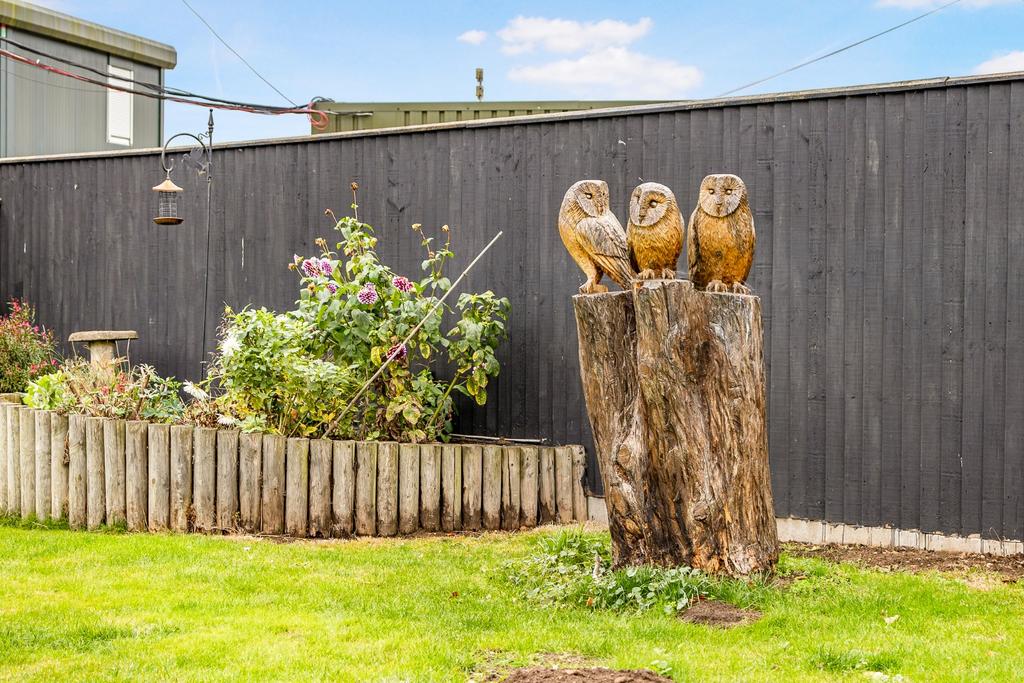 The property is accessed from the rear via a five-bar timber gate, opening onto a private driveway that offers ample off-road parking and access to the garage. The garage provides additional parking, useful storage space, and incorporates a practical utility area. Also situated to the rear is a substantial outbuilding, added by the current owners to accommodate their business. This versatile space offers a variety of potential uses and benefits from its own kitchen area and cloakroom facilities. To the front of the home, there is a fully enclosed garden that is mainly laid to lawn, complemented by attractive paving and multiple seating areas, perfect for relaxing or entertaining during the warmer months. Along one side, a raised bed with attractive planting adds colour and interest, while a log store and a boiler house provide practical additional features.