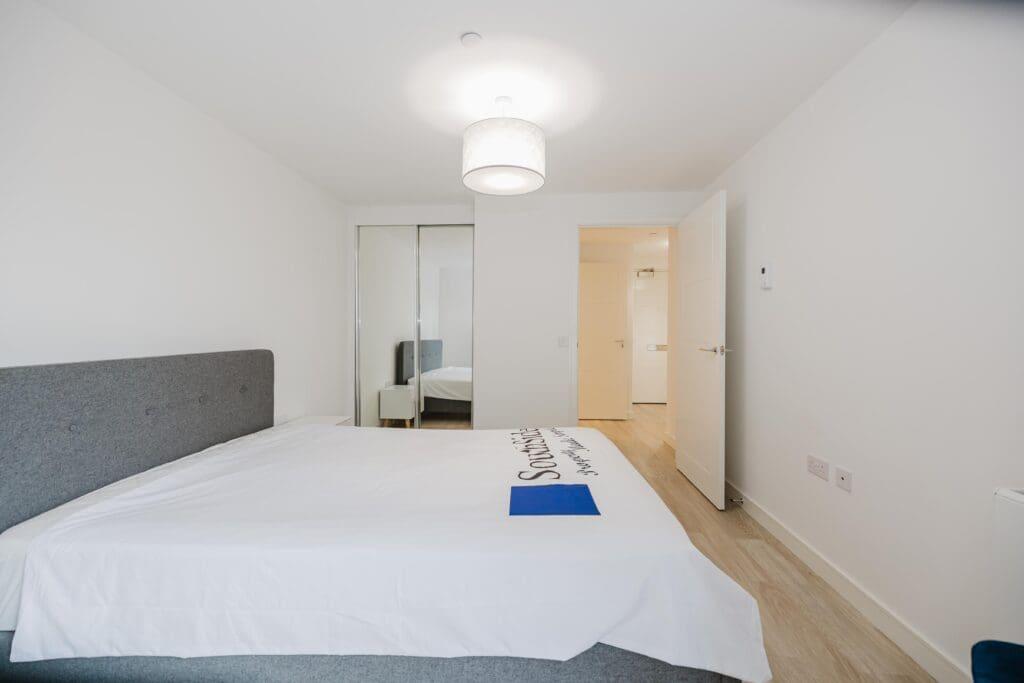 ~Attractive double bedroom, with built-in, sliding, mirrored wardrobe and laminate flooring