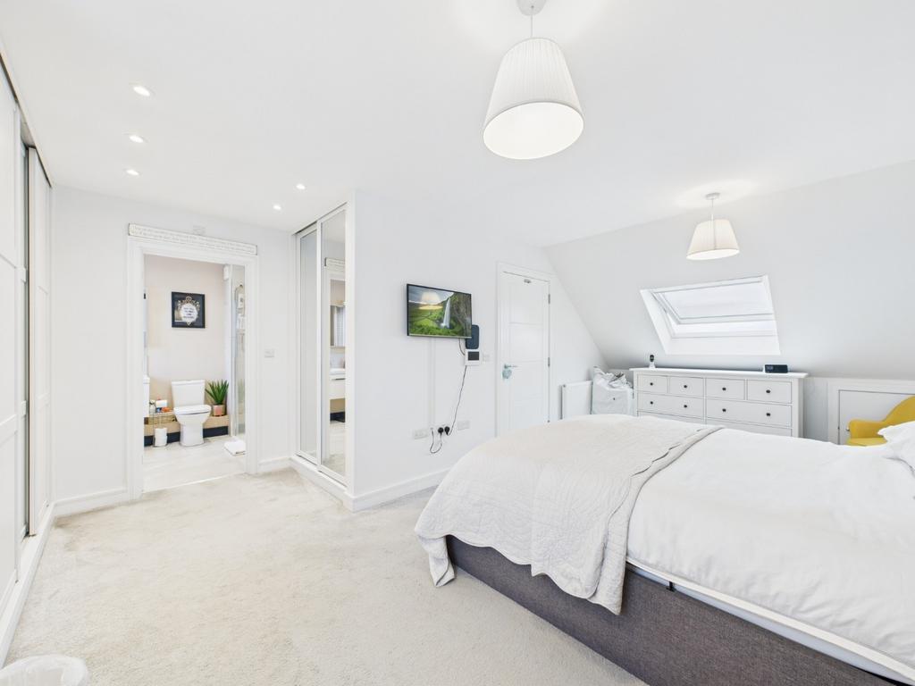 The first floor comprises three generous double bedrooms and a spacious family bathroom, all centred around a large landing area. The top floor hosts a stunning loft conversion, creating a large principal bedroom with a sleek en suite shower room, ideal for privacy and relaxation. The bathrooms consist of Porcelanosa tiles and Roca sanitaryware.