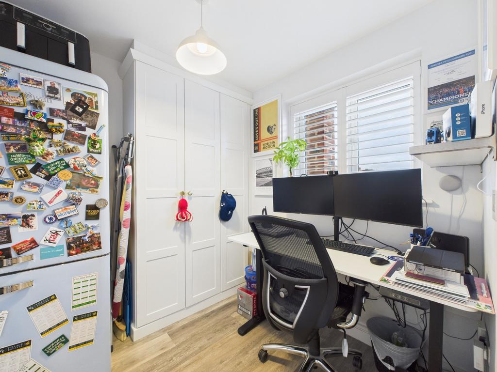 Set across three floors, the home offers flexible living for modern life. The ground floor welcomes you with an open-plan living and dining area featuring a beautifully appointed Stoneham kitchen, complete with premium fittings such as a boiling water tap and Karndean flooring. Underfloor heating with Nest remote control adds to the comfort and efficiency. A stylish W.C. sits off the hallway, finished to a high standard. A versatile room on the ground floor provides a perfect space for a home office, playroom, or guest bedroom, adapting seamlessly to suit your lifestyle. Currently being used as a work from home office space.