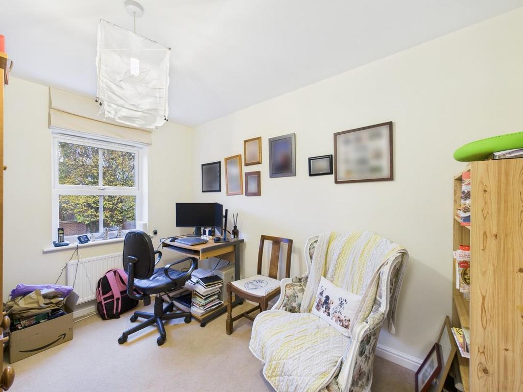 Bedroom/Study - UPVC window to the front, pendant light fitting, carpet flooring and a radiator.